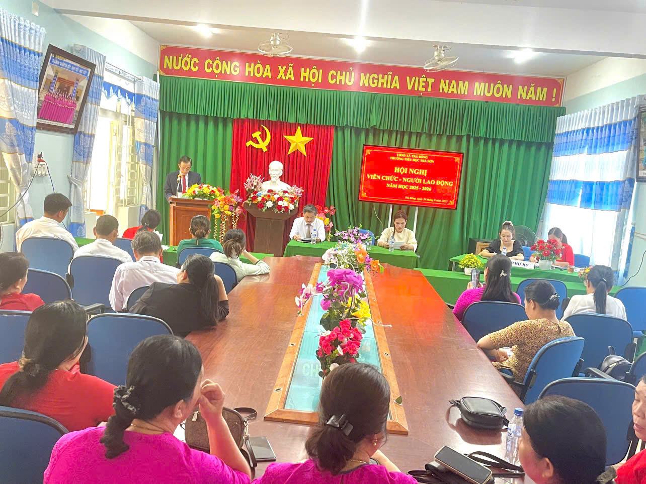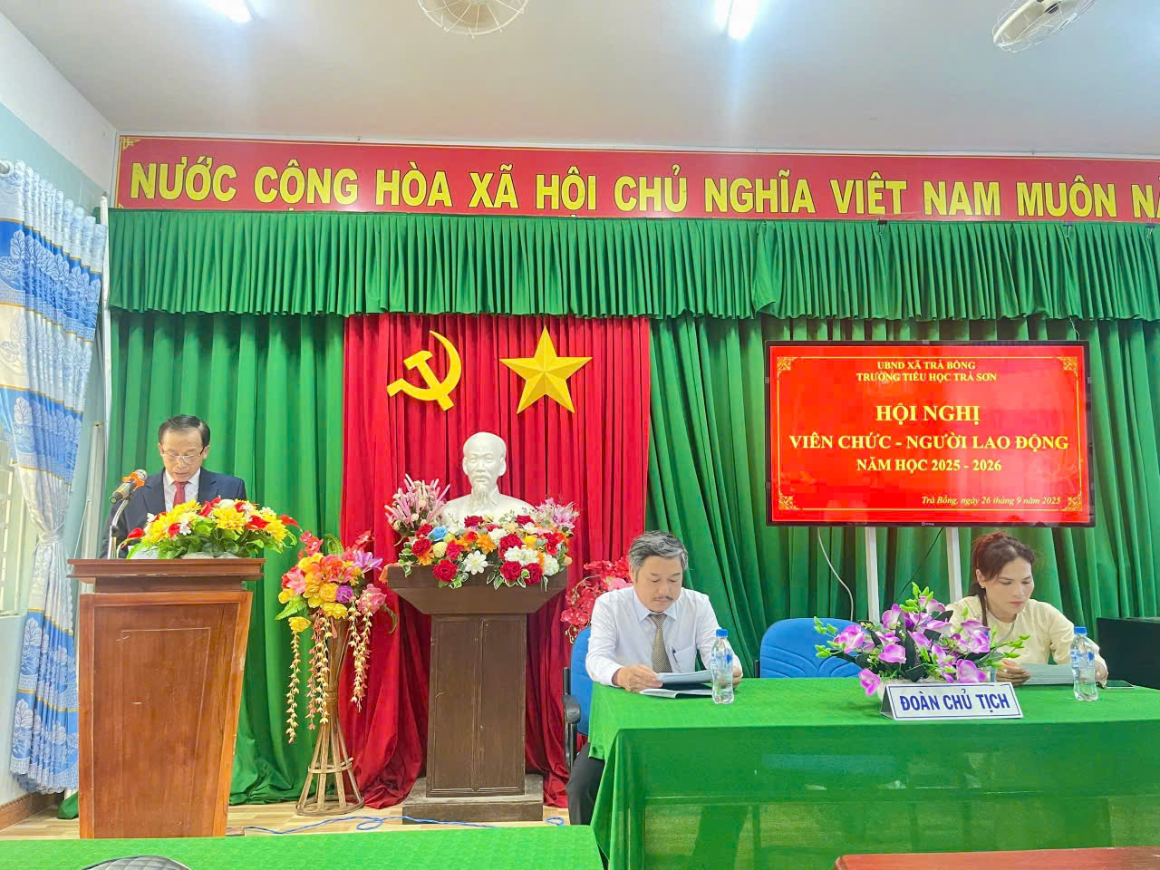 Chiều ngày 26 tháng 9 năm 2025, tại Trường Tiểu học Trà Sơn đã diễn ra Hội nghị viên chức – người lao động năm học 2025 – 2026 trong không khí dân chủ, cởi mở và trách nhiệm. Đây là dịp quan trọng để tập thể cán bộ, giáo viên, nhân viên cùng nhìn lại kết quả đạt được trong năm học qua, đồng thời đề ra phương hướng, nhiệm vụ cho năm học mới.